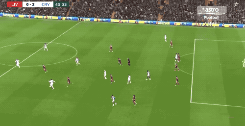 上半场结束前,水晶宫连续一脚传球,利物浦中路的防守又被撕开,萨尔梅开二度。